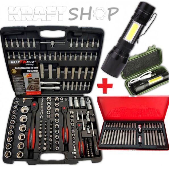 Гедоре 172 части kraftwelle + накрайници 41 части + led джобен фенер